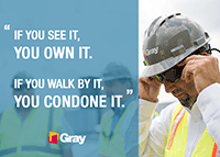 - Everyone is working together to create a safe environment – while researching this article we came across the perfect quote used by Gray Construction, “If you see it, you own it. If you walk by it, you condone it.”